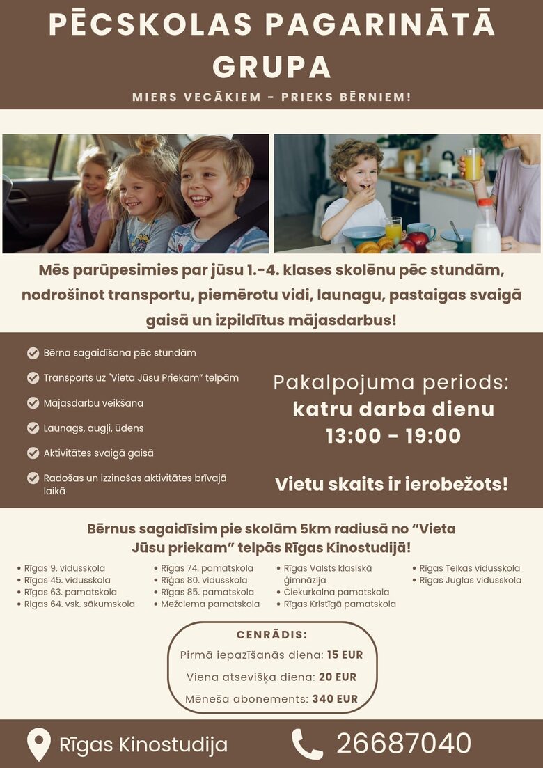Telpu noma "Vieta Jūsu priekam" atrodas Rīgas Kinostudijā- blakus TC Akropole Alfa.