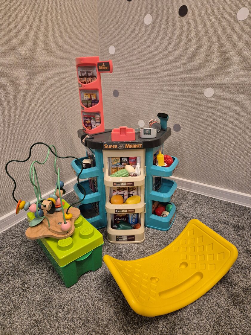 Rotaļu istaba atsevišķā telpā, lai bērni var netraucēti spēlēties.