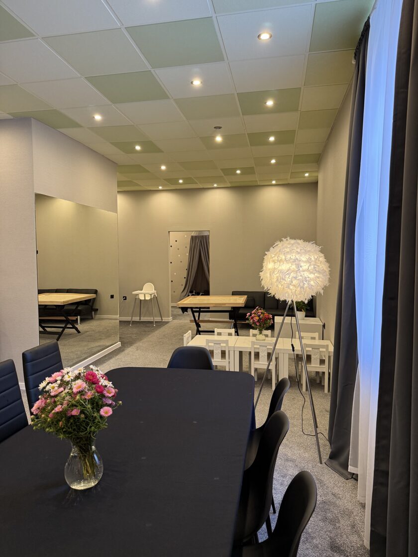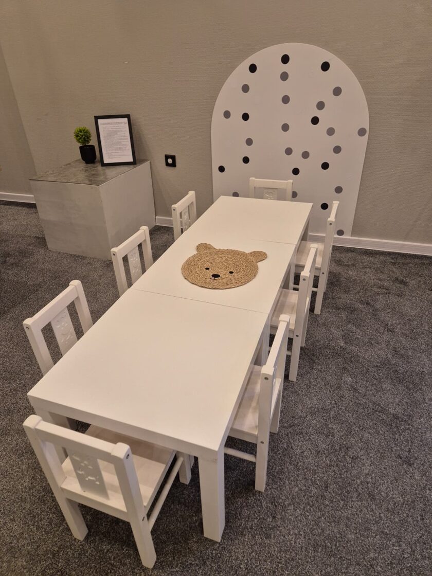 Mazuļu rotaļu zona atrodas tieši blakus ēdamgaldam, ļaujot vecākiem izbaudīt maltīti, kamēr mazie spēlējas